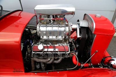 A beautiful hot rod build by Jago based on the Ford Model B. The vehicle is equipped with a "big block" and quality components. Custom interior including dashboard, dragster tires, lots of individual parts. The vehicle has a historic vehicle license. We recommend a personal inspection.