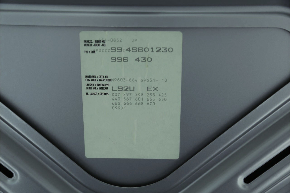 Vehicle in great visual and technical condition. Delivered as new in Italy. Accidentfree, original painting. Mechanically completely without faults, fully running and reliable. Very well preserved leather interior, extra costs items. Visually in great condition. Very nice vehicle, ready for ride. Data sticker codes: C07 Version for Italy X97 Gear lever knob with aluminium inlay X98 Handbrake lever with aluminium inlay 288 Headlamp washer 425 Rear window wiper 440 Windscreen antenna 567 Top-tinted windscreen 601 Litronic (xenon) headlamps 635 ParkAssistant 650 Sun-moon-roof 665 PCM 2 Porsche Communication Management screen with radio, CD 666 Telephone module for PCM 668 Telephone handset for PCM 670 Navigation module for PCM 09991 Vehcle from exclusive program