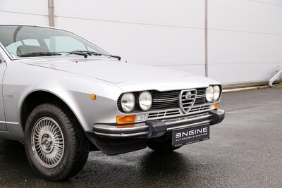 Nabízíme k prodeji pěknou Alfu Romeo Alfetta GTV 2,0 od slavného Giorgetta Giugiara (Italdesign). Menší a dostupnější příbuzná Alfy Romeo Montreal, toto je skutečné sportovní auto s výbornými jízdními vlastnostmi díky správnému rozložení váhy - motor vpředu, převodovka vzadu. Toto auto je v pěkném stavu, nevyžaduje žádnou podstatnou okamžitou investici. Mechanika auta je naprosto v pořádku, interiér je velmi zachovalý, karosérie je bez zřetelné koroze.