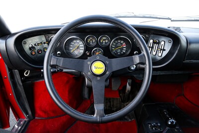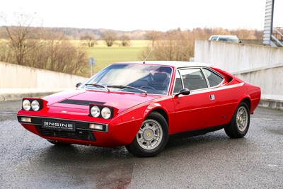 Pěkná Ferrari Dino 208 gt4. Jedno z pouze 840 vyrobených kusů. Velmi pěkný stav, nízký nájezd 63 000 km, čísla motoru a karosérie jsou shodná.