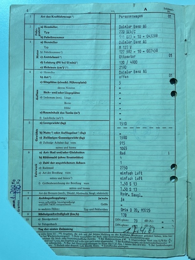 Vozidlo původem z Německa, do ČR koupeno soukromým sběratelem v roce 2010. Původně bílý Mercedes prošel celkovou profesionální renovací - karoserie, interiér, motor, převodovka, spojka, podvozkové části, brzdy, kardan, střecha, atd.. Vše pečlivě zdokumentováno v přiložené fotodokumentaci. Veškerá historie vozidla, servisní práce a technické prohlídky zdokumentovány ve složce společně s fakturami. Nyní v perfektním a plně funkčním stavu. Perspektivní sběratelský kus, vyrobeno pouze 2729 kusů tohoto modelu!
