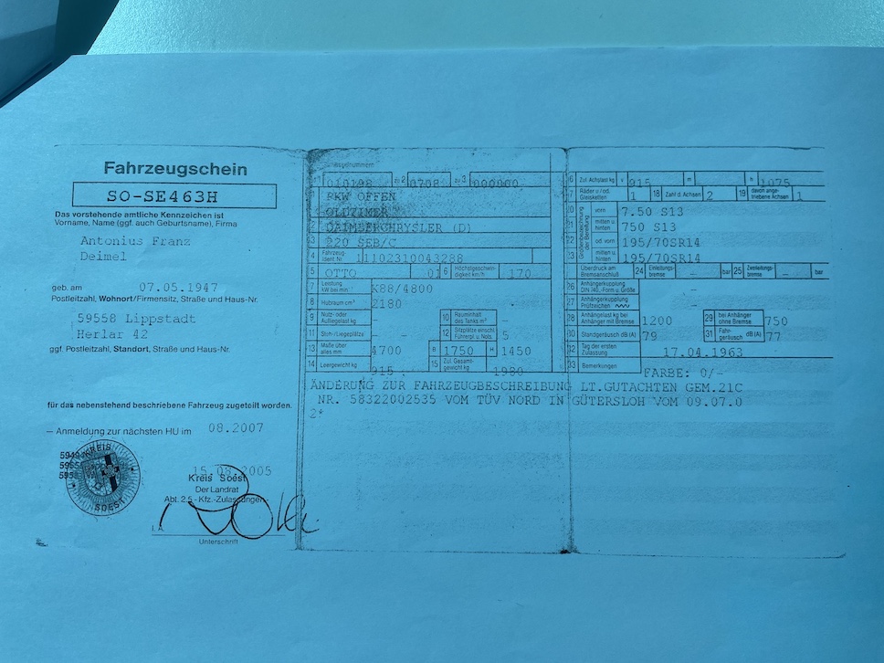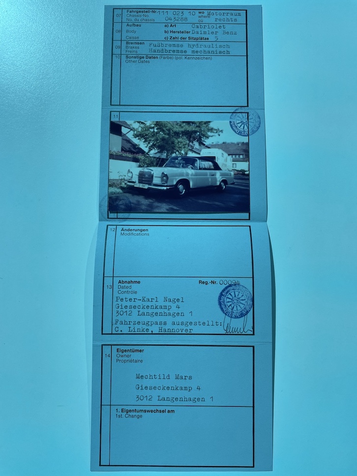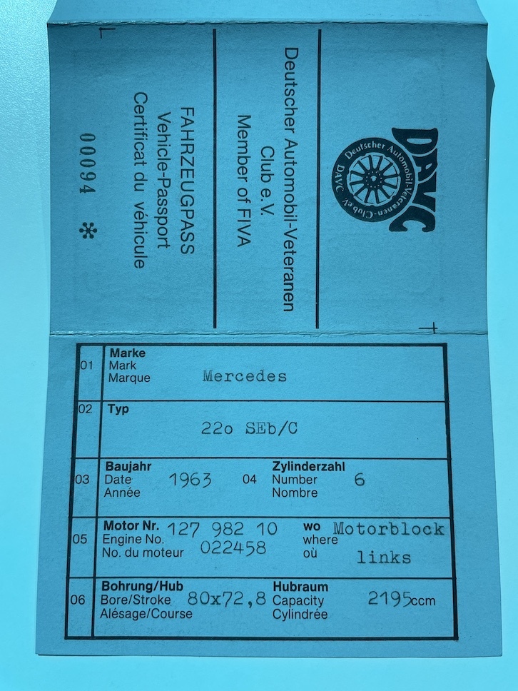 Vozidlo původem z Německa, do ČR koupeno soukromým sběratelem v roce 2010. Původně bílý Mercedes prošel celkovou profesionální renovací - karoserie, interiér, motor, převodovka, spojka, podvozkové části, brzdy, kardan, střecha, atd.. Vše pečlivě zdokumentováno v přiložené fotodokumentaci. Veškerá historie vozidla, servisní práce a technické prohlídky zdokumentovány ve složce společně s fakturami. Nyní v perfektním a plně funkčním stavu. Perspektivní sběratelský kus, vyrobeno pouze 2729 kusů tohoto modelu!