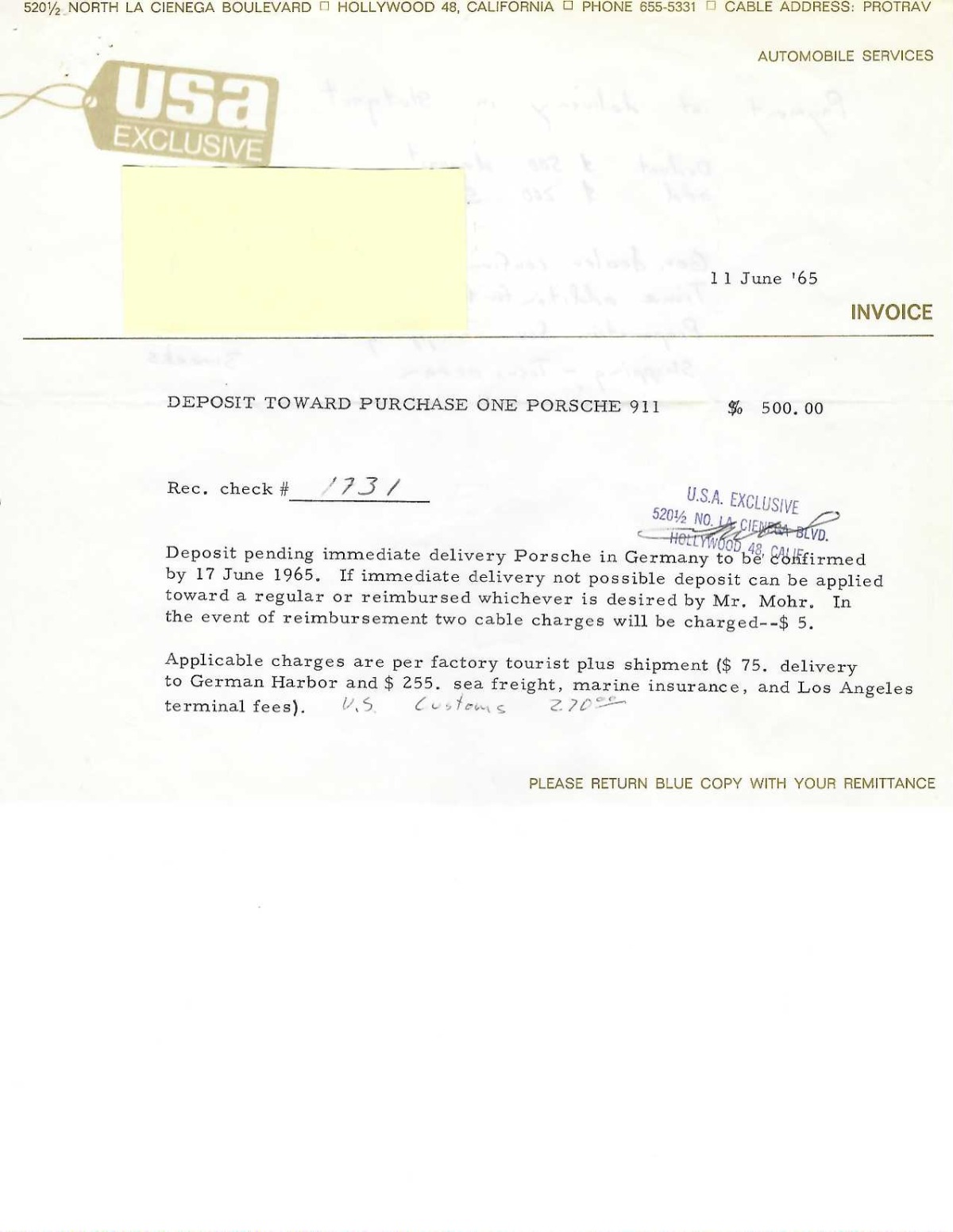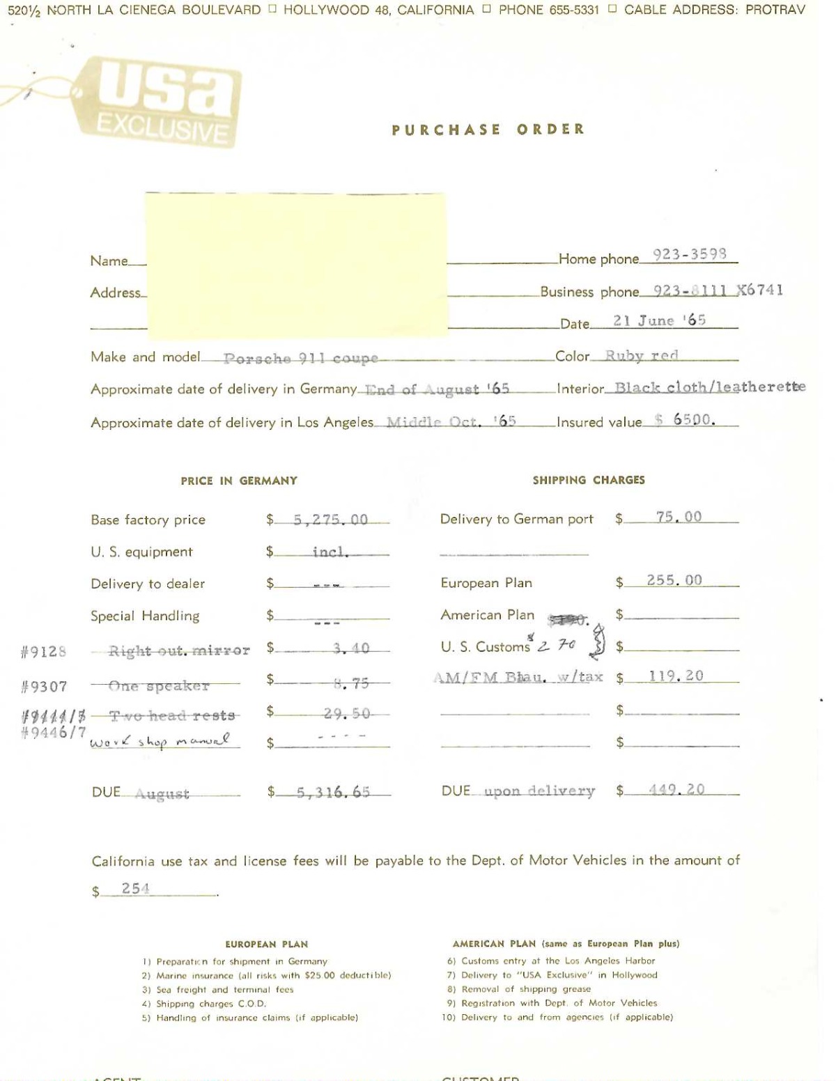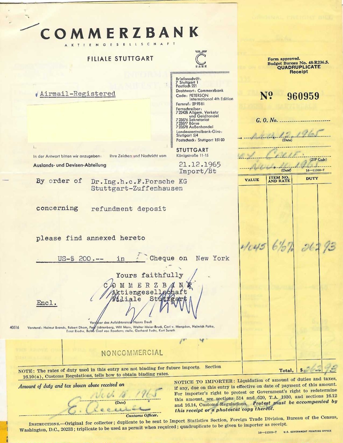 Velice vzácné Porsche 911 z prvního roku produkce legendární modelové řady 911. Jeho vzácnost spočívá v zachování naprosto originálního stavu, přičemž je stále plně pojízdné. Původnost dokládají signifikantní prvky jako mřížky u blinkrů či pět budíků v palubní desce. K vozu je k dispozici kompletní dokumentace - původní kupní smlouva s platebními údaji ze září roku 1965, exportní doklady z Německa do USA, servisní knížka a kompletní záznamy o provedených údržbách. Tato ucelená historie podtrhuje jedinečnost a činí z něj skutečný sběratelský skvost. Sběratelský svět vnímá tento originální stav jako sochu, kterou je třeba zachovat či velice citlivě renovovat.
