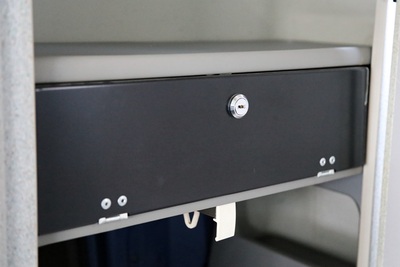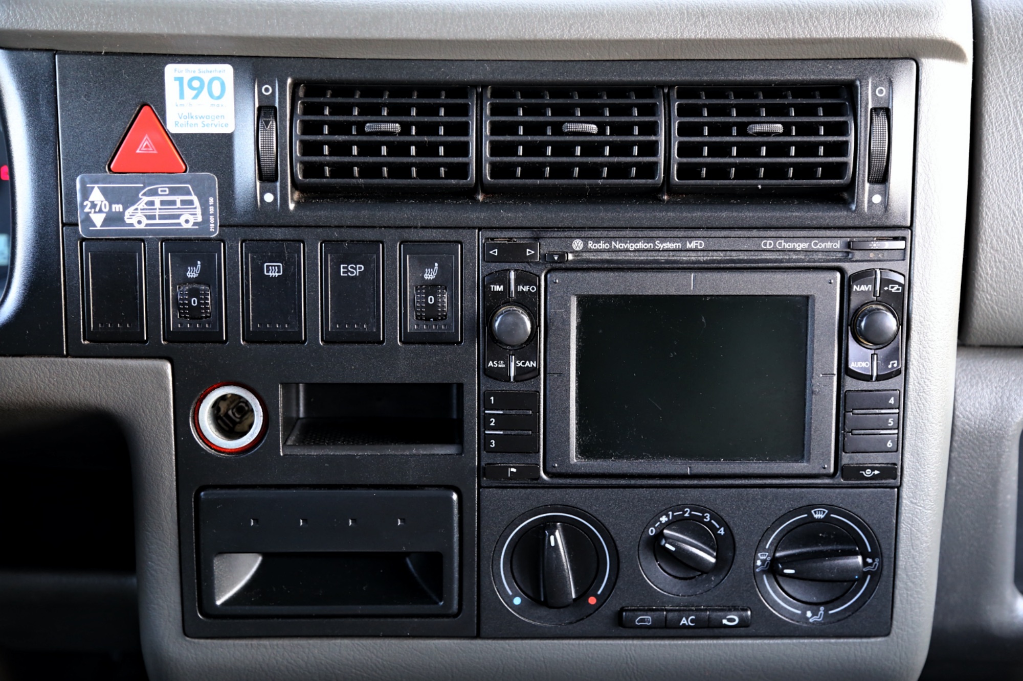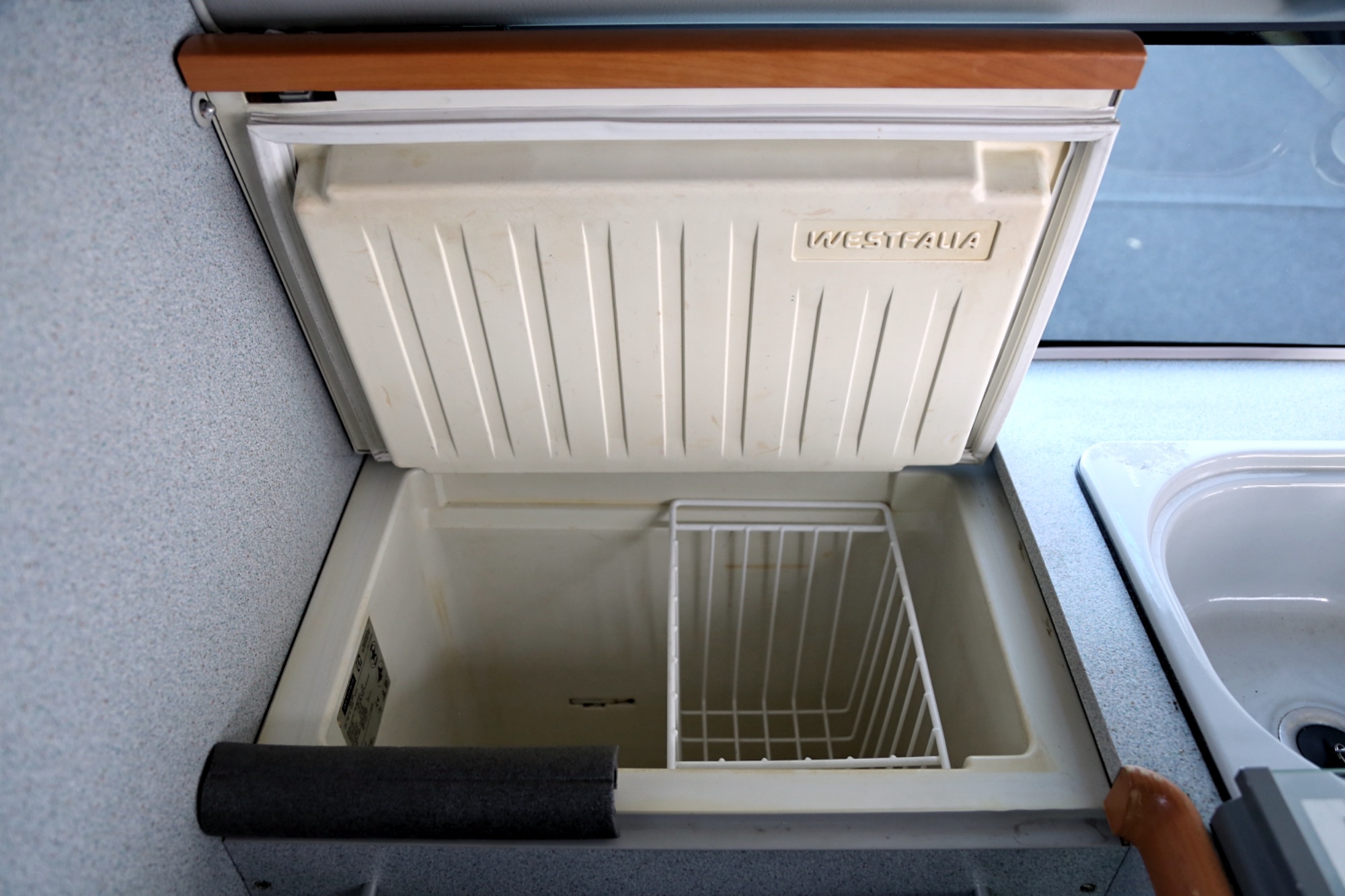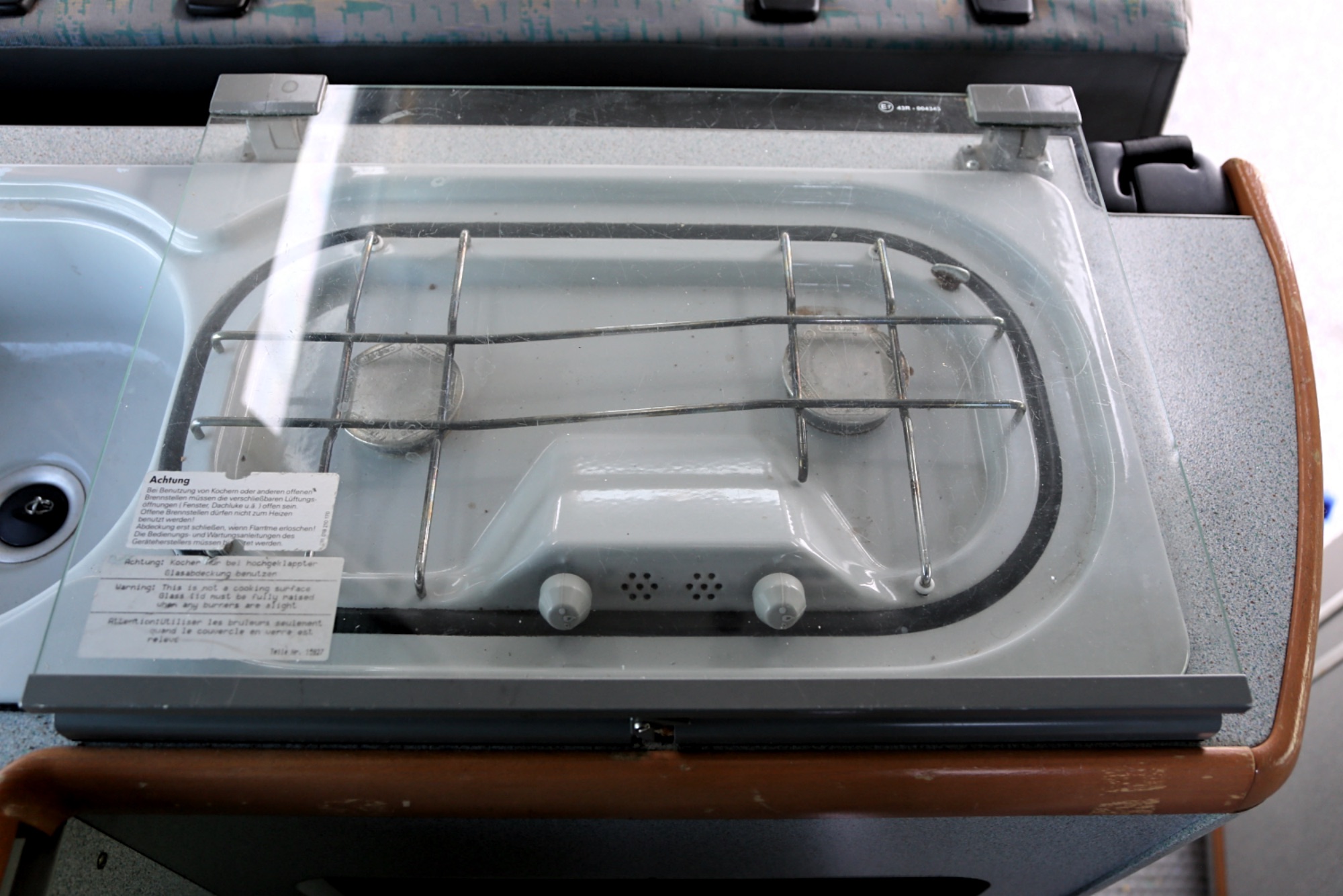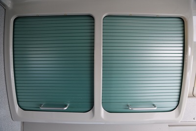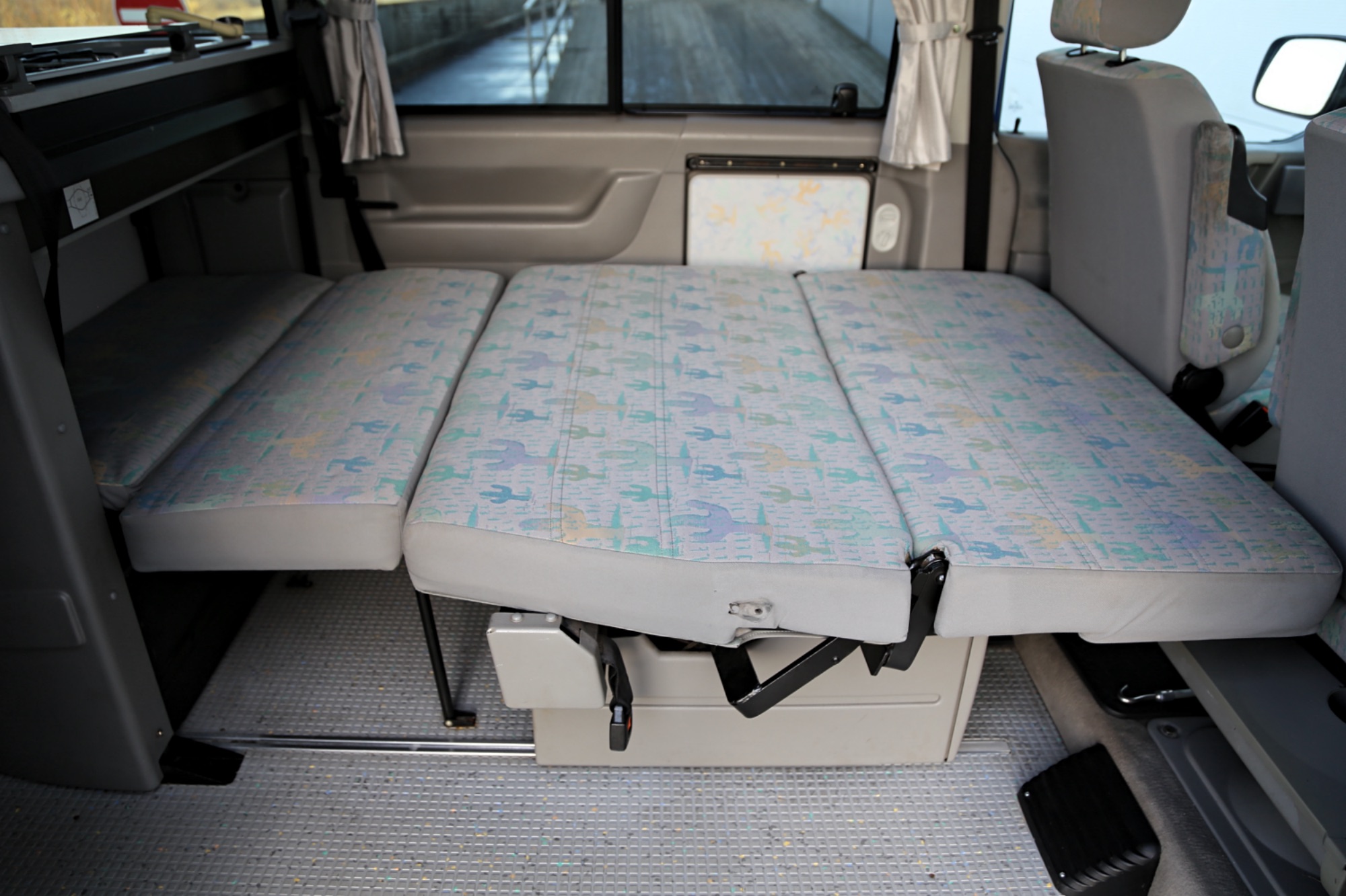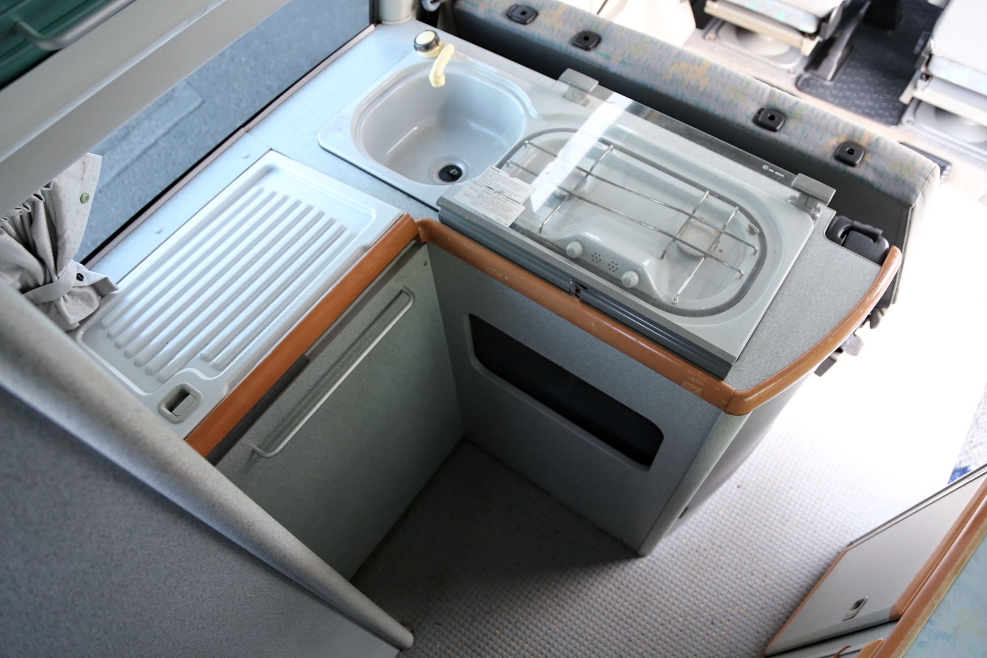 Interiér perfektně zachovalý, vše plně funkční. Výbava - lednice, plynový vařič, nezávislé topení, WC, umyvadlo, trezor, úložné prostory, malý a velký stolek, otočná sedadla, velká postel v nástavbě a rozkládací sedačka ve spodní části, výsuvná pergola - vše v originálním stavu. Počet míst k sezení: 4
